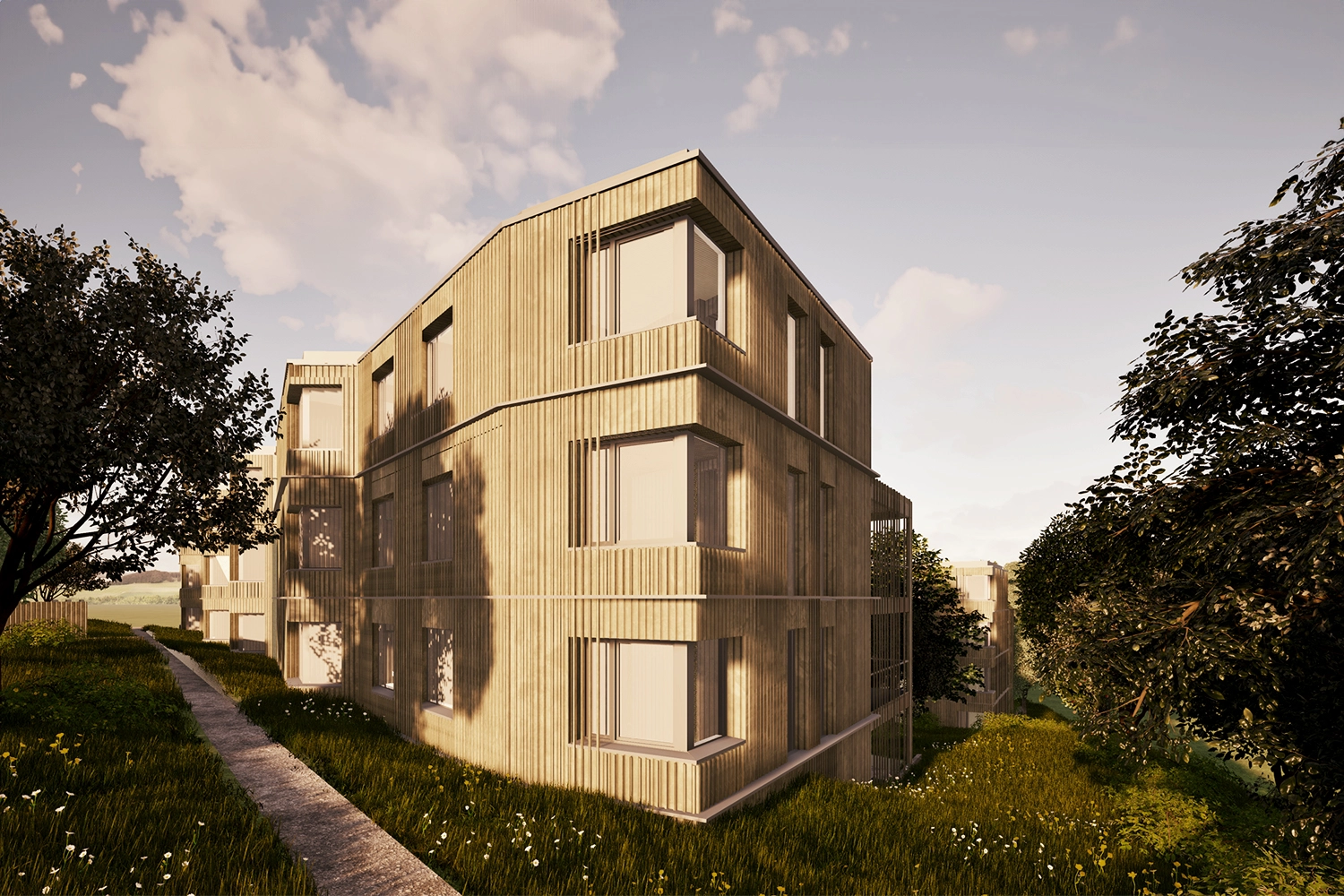 Die Wohnsiedlung Baumgarten in der naturnahen Umgebung am Stadtrand von Zürich wird in Minergie P Eco Bauweise erstellt und ist mehrheitlich für Familien konzipiert.