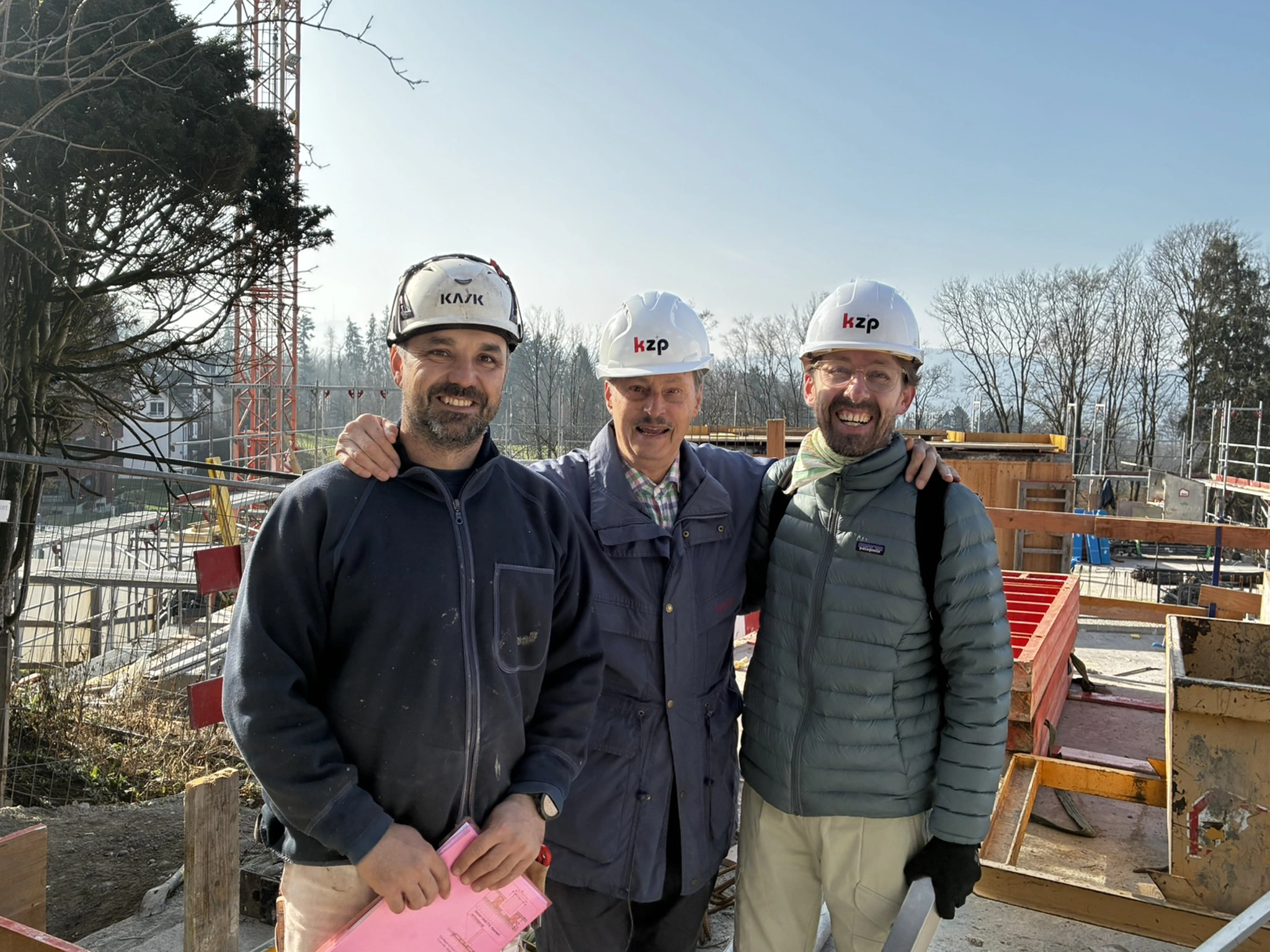 Gemeinsam wurde der aktuelle Stand vor Ort geprüft und die nächsten Schritte besprochen. Ein schöner Moment, wenn der Baufortschritt sichtbar wird und alle zufrieden sind.