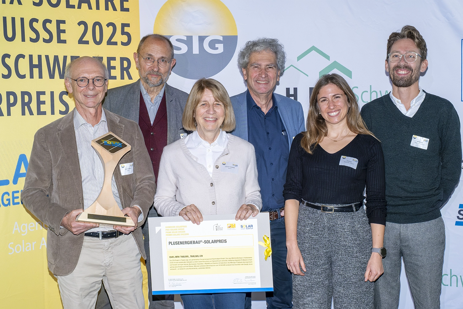 Der Schweizer Solarpreis 2025 (Kategorie PEB) würdigt die intelligente Kopplung der drei Liegenschaften sowie die hochwertige, projektspezifisch entwickelte BIPV-Fassade.
