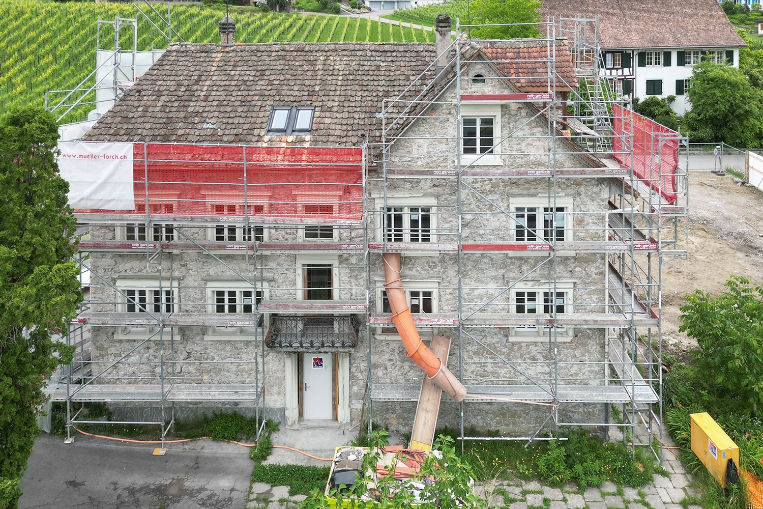 Die energetische Sanierung erfolgt unter denkmalpflegerischer Begleitung, mit PV-Indachmodulen, Erdsonden-Wärmepumpe und Minergie-Eco-Standard.